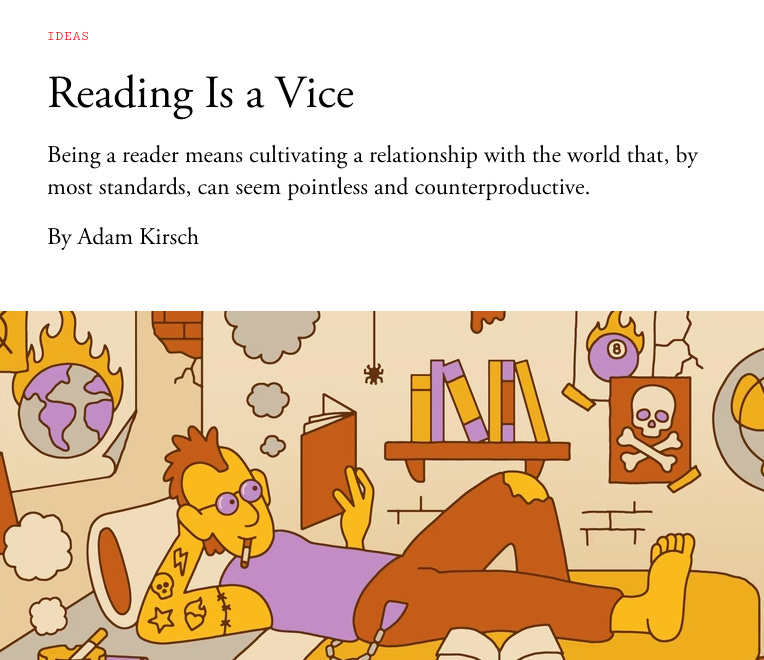 Reading is a vice. and thats a good thing. By positioning reading as something that can be addictive, it ups the odds people will want to get into it.