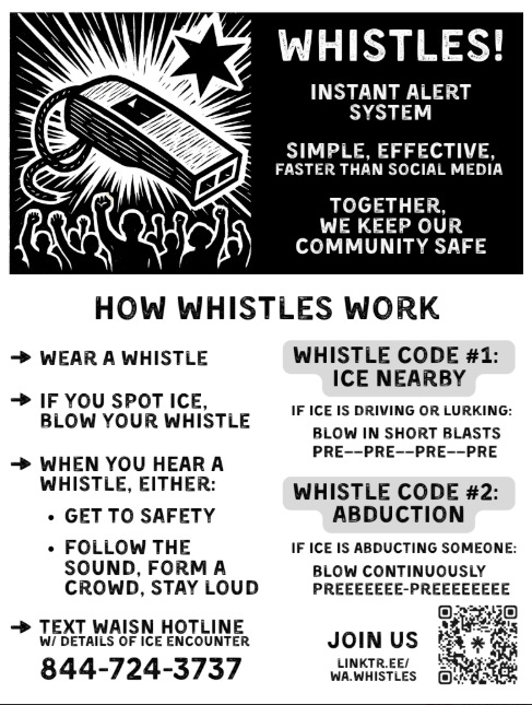 buy some cheap whistles and hand them out. Here are more resources re; whistles as part of community defense.