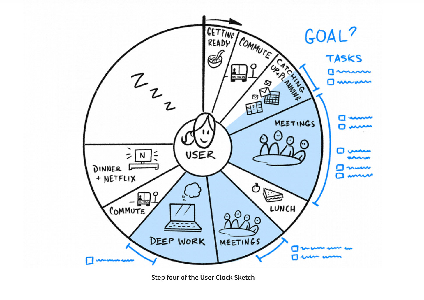 A variation on the user journey, is the user clock;
