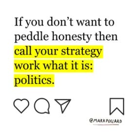 (note: this reinforces why I like to think of my freelance practice as “forward facing strategy” – I try to work on projects shoulder to shoulder with people rather than treat clients like an audience member. Together, we deliver something to the audience. And if the audience isn’t singular, well, usually those I work with are better equipped to deliver work in an amphitheater than I would be.