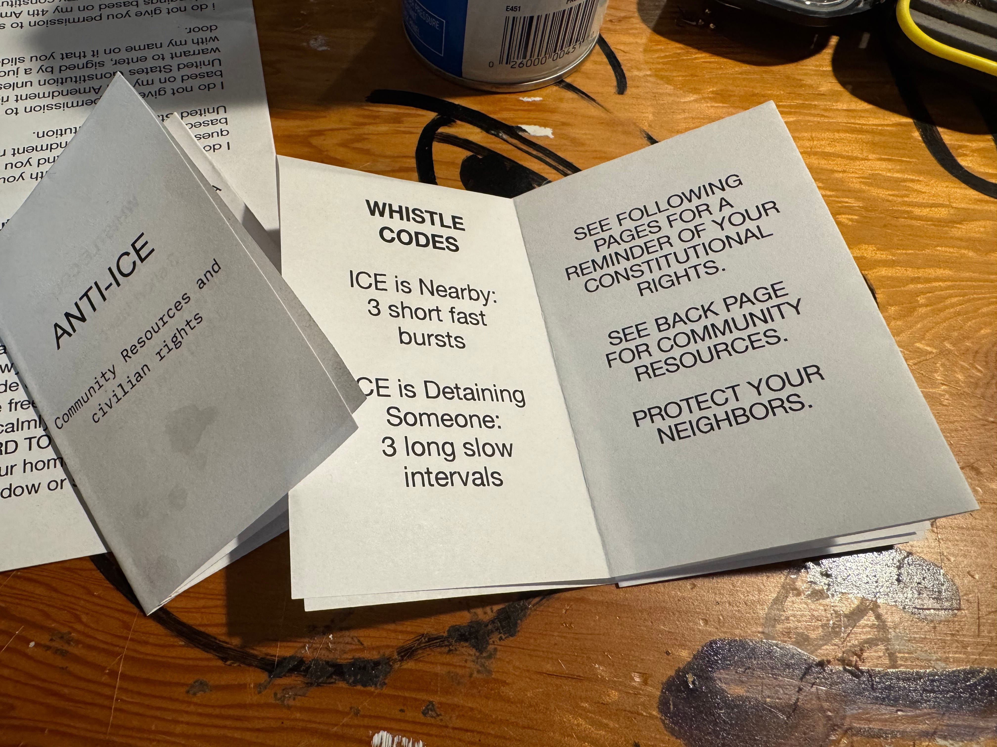 Put a whistle and a zine in a ziplock bag, repeat as many times as you can, and leave them around town in coffee shops etc.
