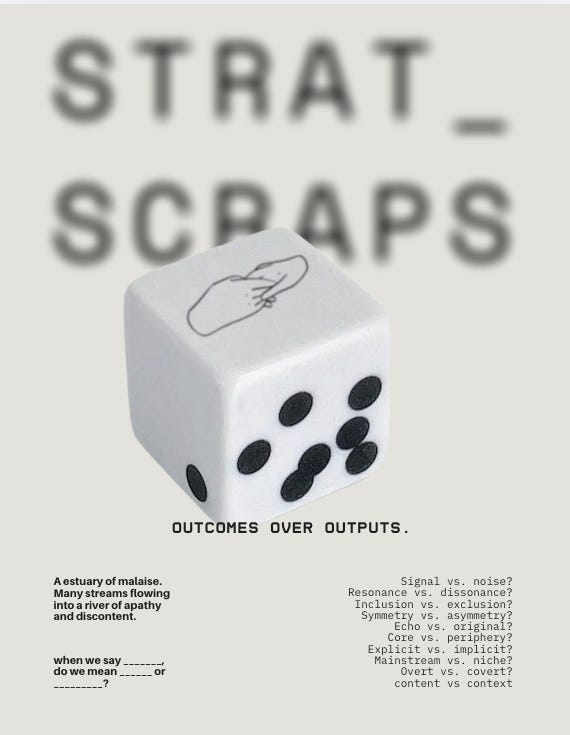 A quick reminder: these newsletters are not really edited for typos or clarity. this is a place where I offload thoughts, in the hope they are valuable or interesting to others. typos and less than clear writing are a reflection of the function of this newsletter, not my ability to write. I can assure you I edit my work when I am being paid for it.Anyway, on to strategy things…
